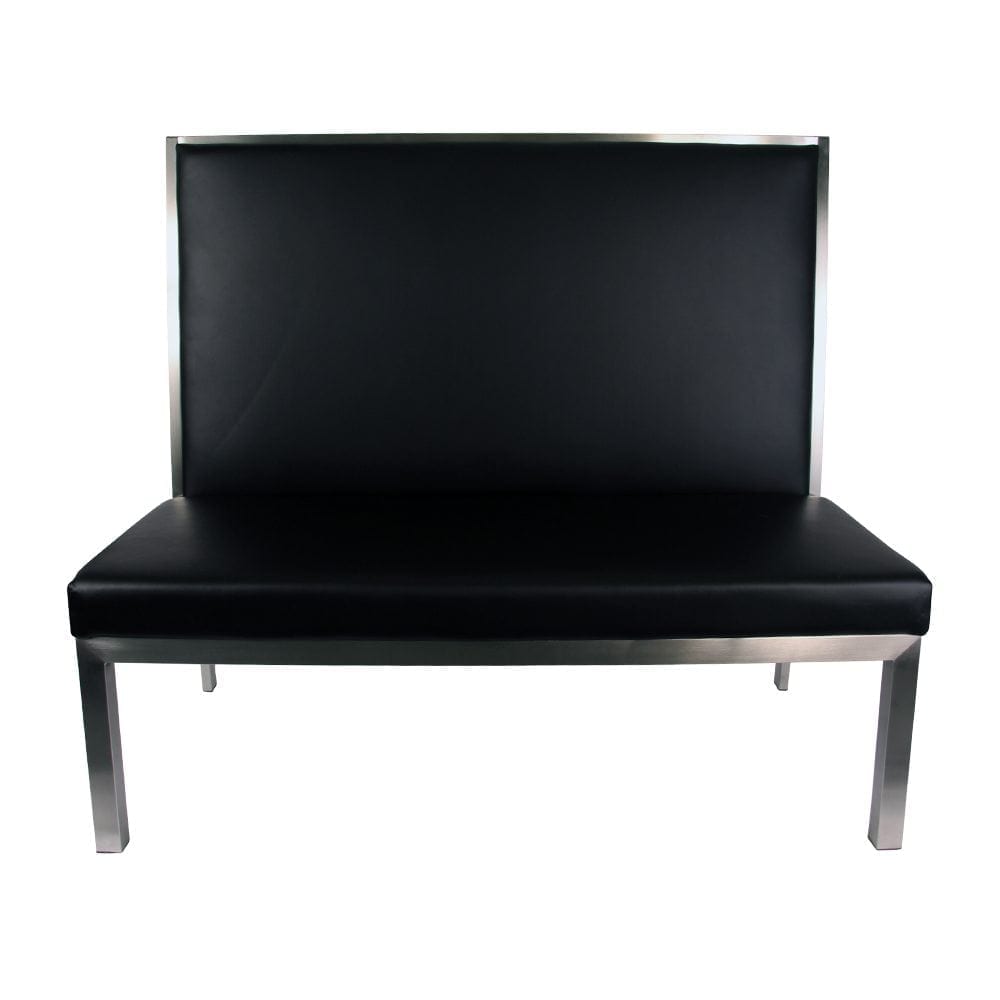 Features Material Black vinyl upholstered seat and back Stainless steel frame Finish n/a Indoor/Outdoor Indoor use only Needs Assembly No Dimensions D 640mm x W 1200mm x H 1080mm Floor to seat 430mm Stackable No Quality Commercial grade Warranty 12 month Other Features Matches perfectly with our 800x1200mm tables Please be aware that while utmost…