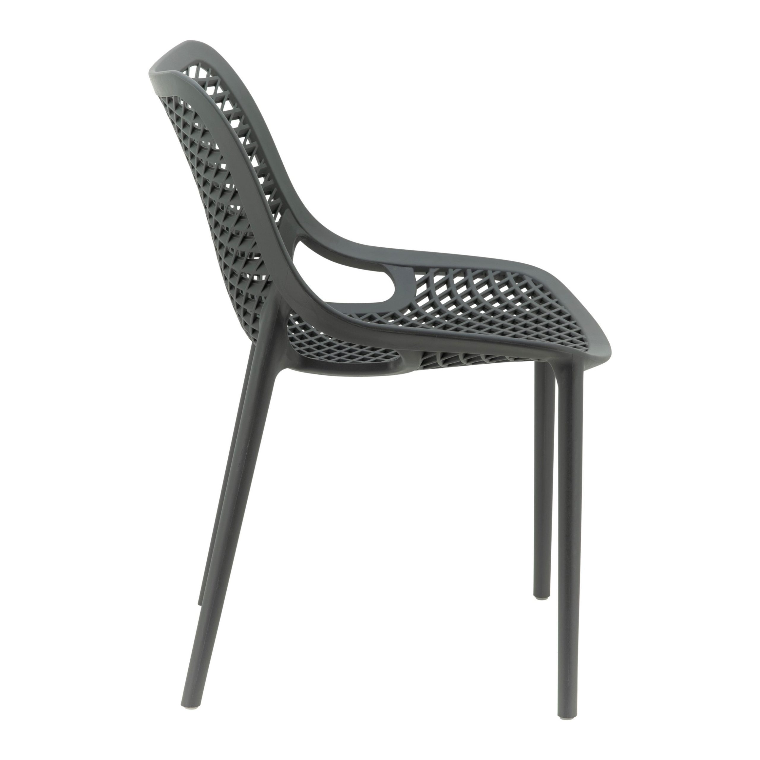 The Envy Chair in Charcoal can withstand harsh weather conditions. It’s designed to offer you and your guests/customers top-notch comfort. The chair has perfectly perforated holes for ventilation, which will keep your customers cool on hot days. If this chair is left outside during the rainy season, the holes will drain the water quickly.