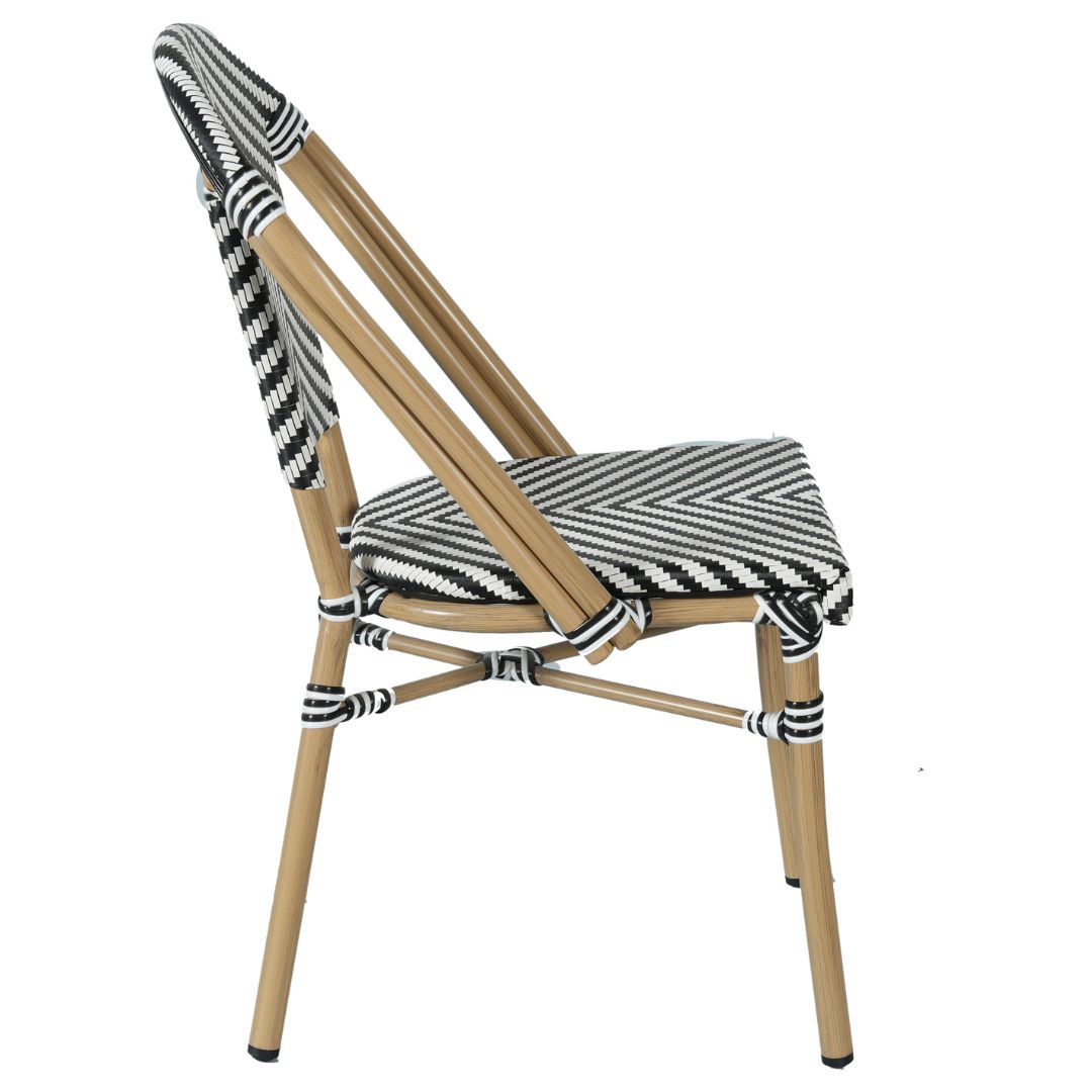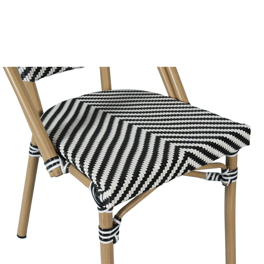 If you’re seeking a café chair that is stylish, lightweight, and suitable for indoor or outdoor use then take a look at our Parisian chair. This really is a fabulous looking chair with its 4x4mm weave texteline back and seat and lightweight aluminium welded frame. Strong and durable, this chair can be used both indoors and out, and with elastic beneath the seat for additional support and strength, it’s extremely comfortable too. It’s also easy to maintain, requiring little more than a wipe down with a damp cloth to remove any spills or sticky finger prints. At the end of a busy day, café owners will also be relieved to know that the Parisian chairs can be stacked on top of each other, 12 and more high, which makes light work of moving them inside or storing them away.