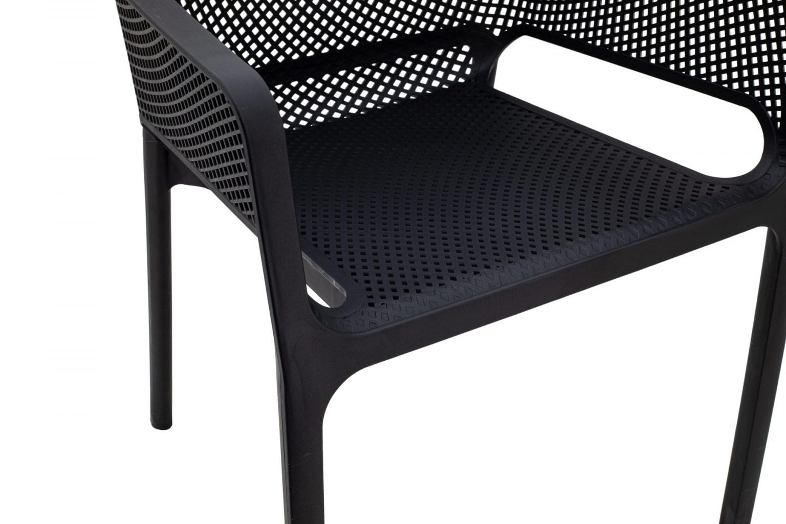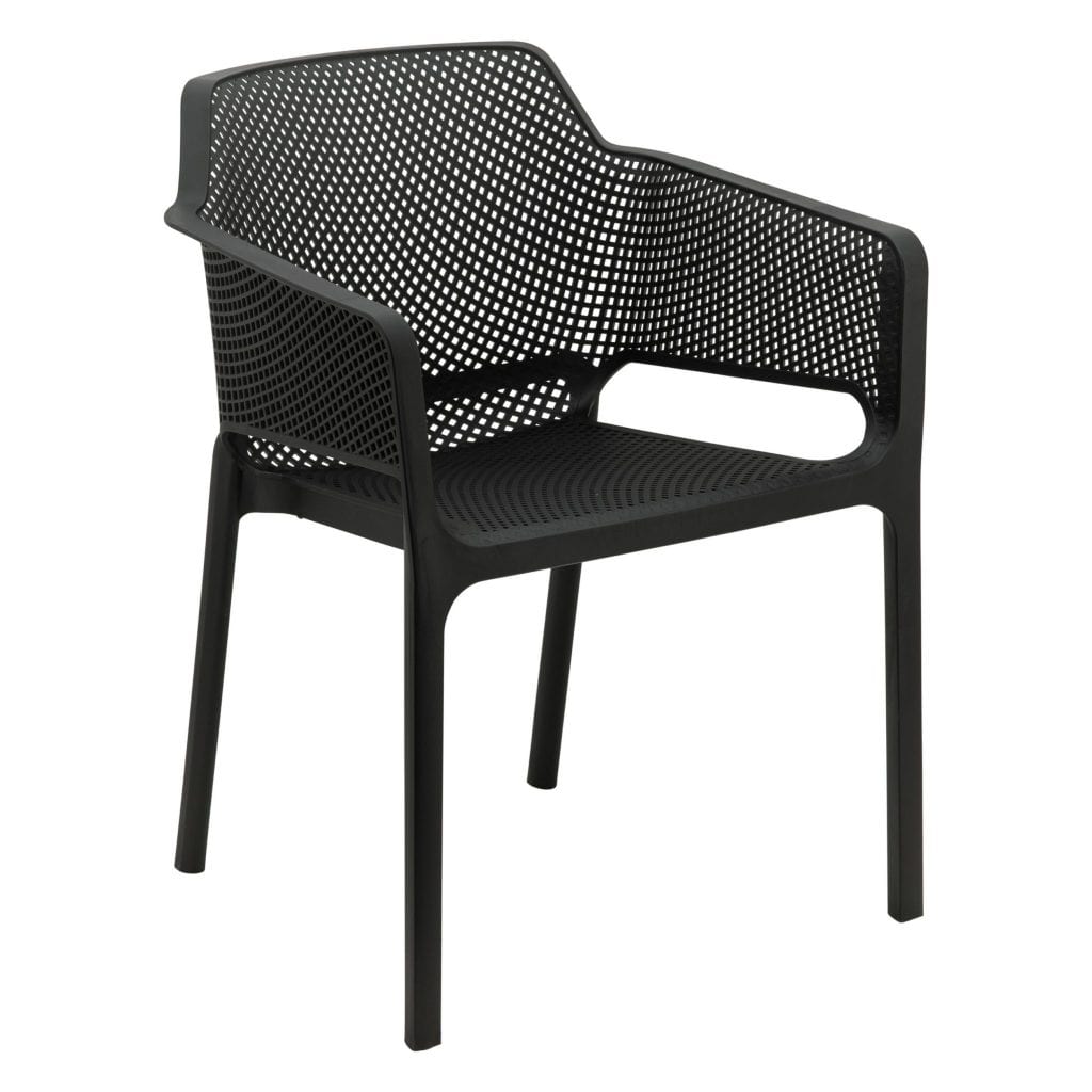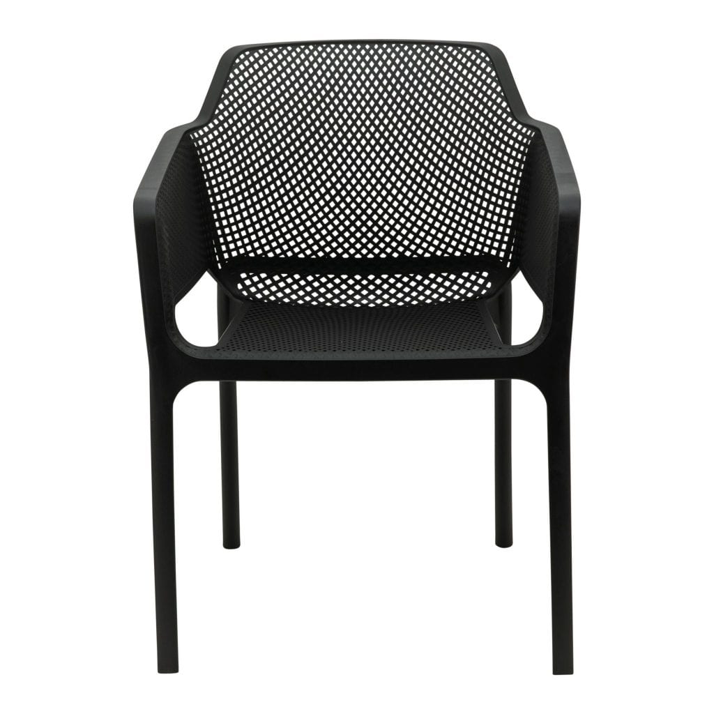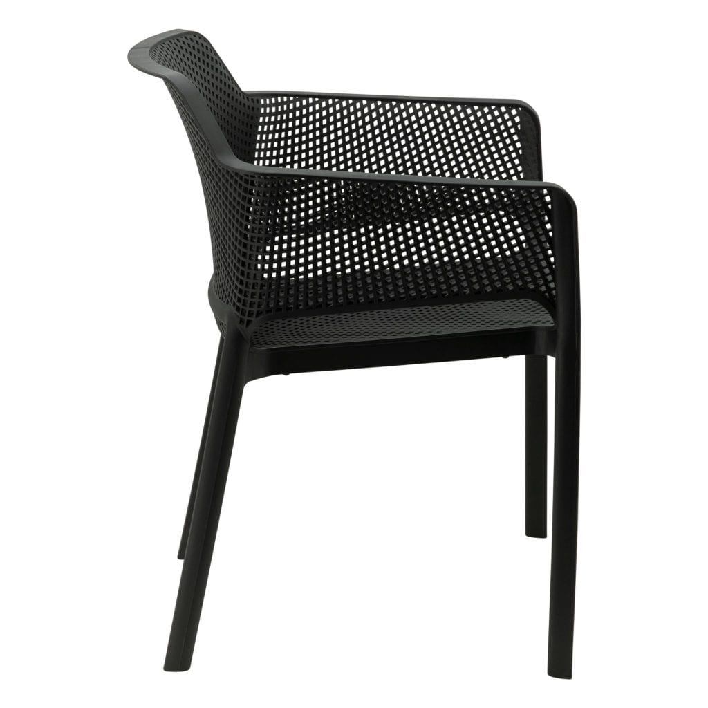 Café Solutions Net Chair In Black has an armrest that allows guests to sit comfortably and position their hands.