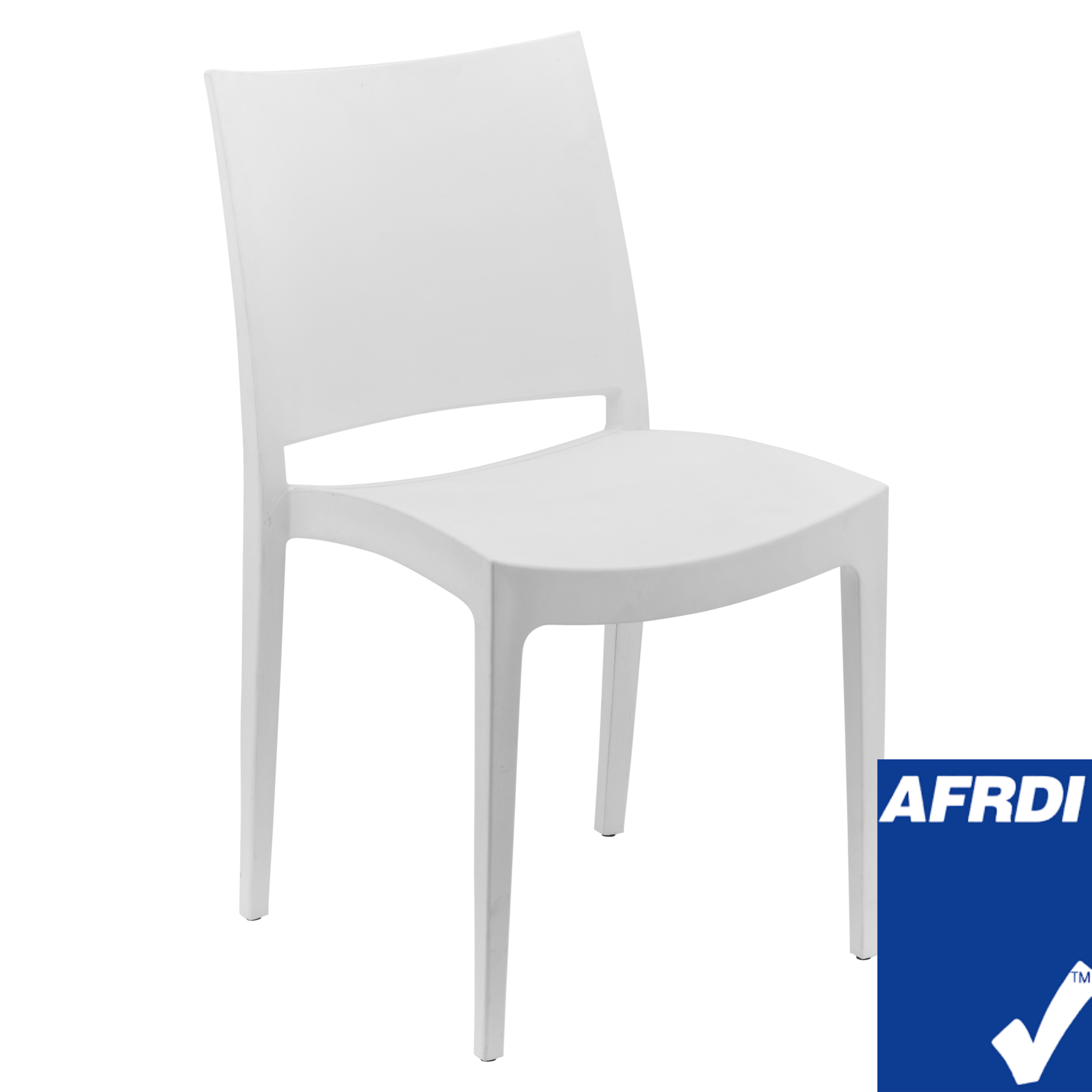 You could be mistaken for thinking that our white Specta chairs might look a little clinical but trust us when we say they can work well with a variety of themes and decors. Well-proportioned in their design, they have solid backs which offer support and a good sized seat too. Durable and robust, they are surprisingly light in weight, so ideal for busy establishments where you can move them easily from one place to another to suit your business needs.