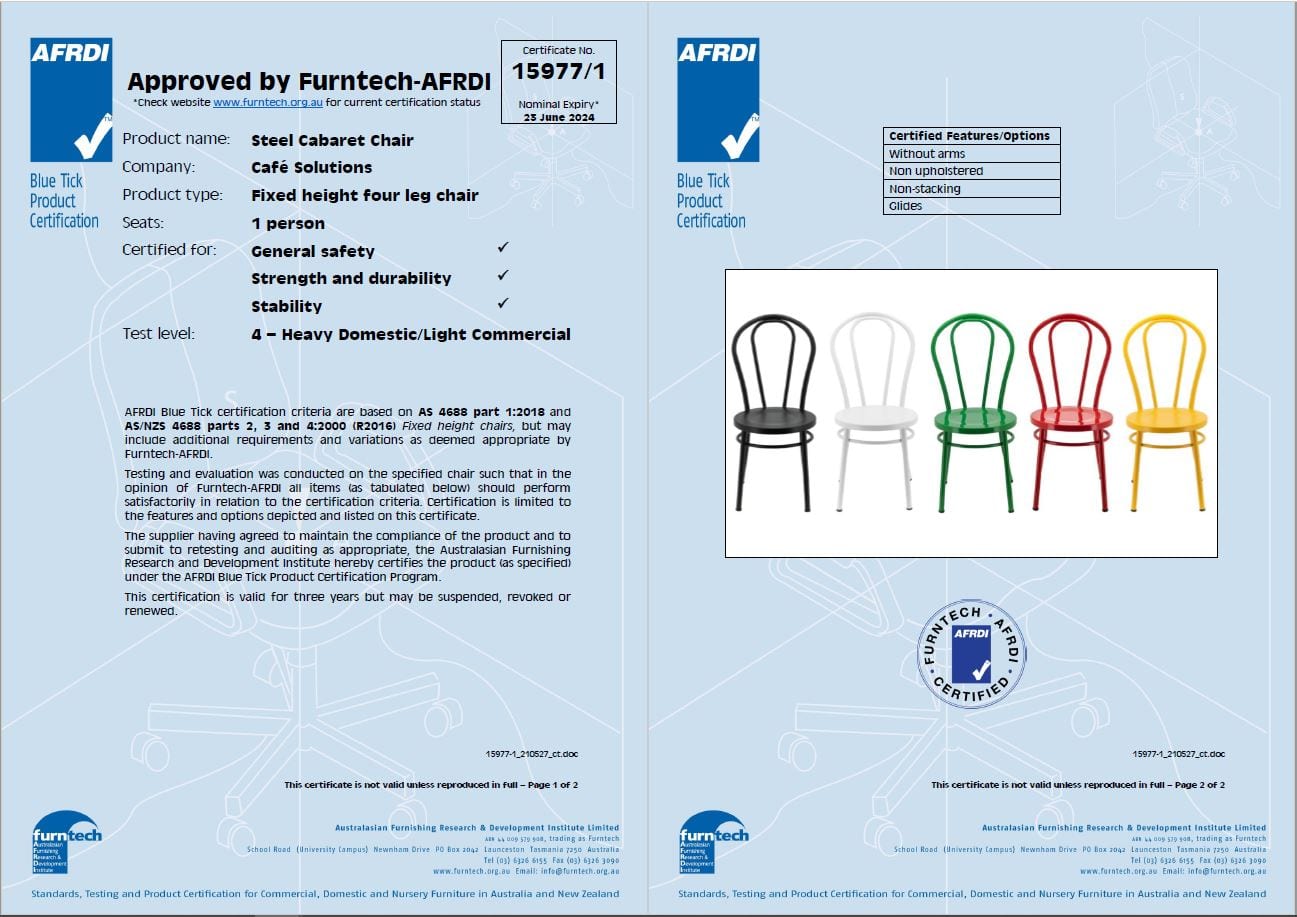 The chair is light enough to be picked up moved wherever you need it, yet it’s sturdy enough to withstand the rigours of a busy café/bistro. In addition it can easily be wiped down with a damp cloth in case of spillages.