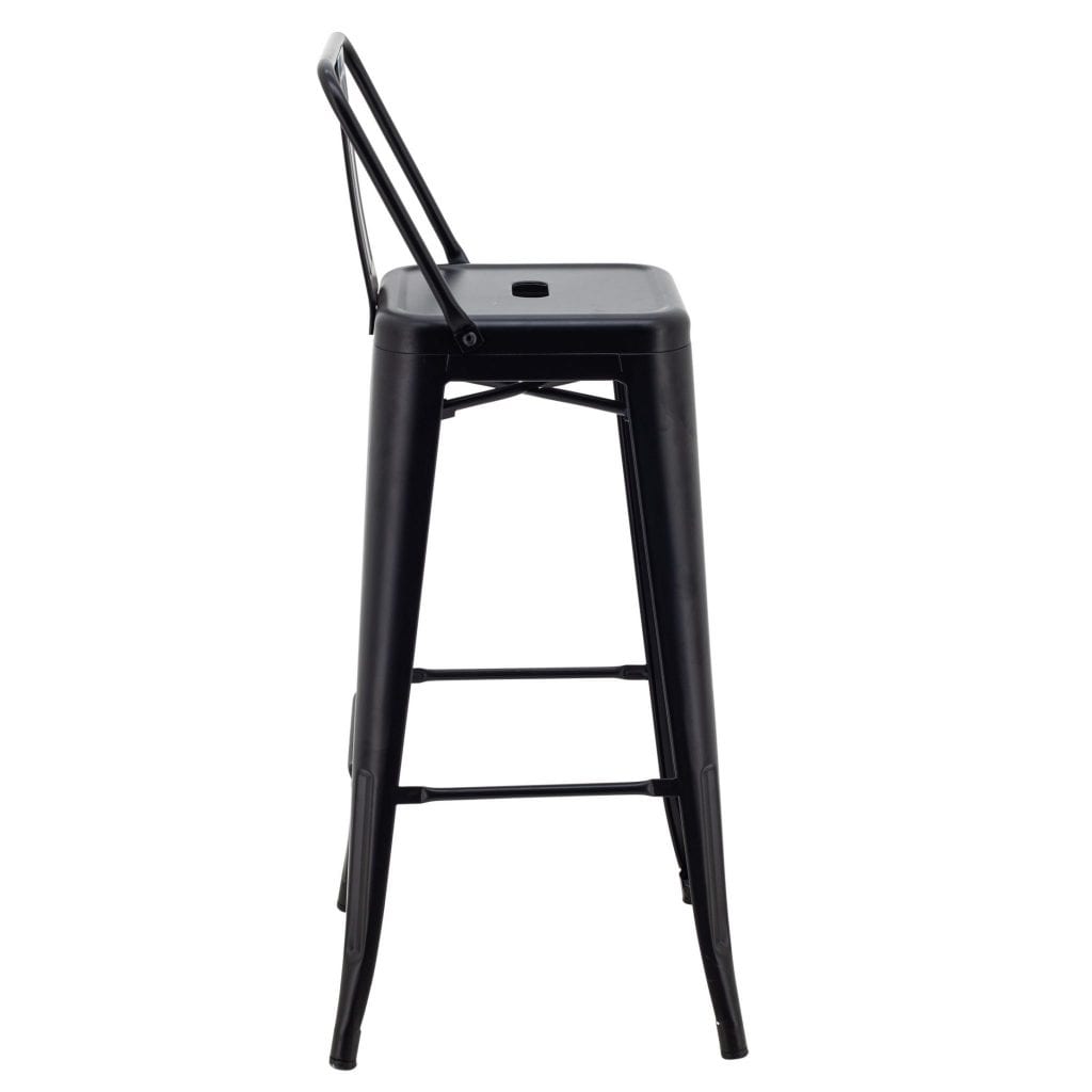 Tall, dark, and elegant our tall replica Tolix bar stool has now been up-graded with the addition of a low back rest.