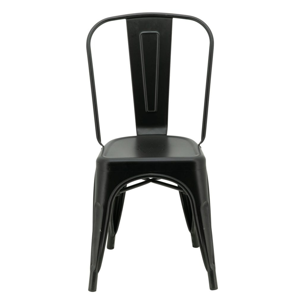 Originally designed by Xavier Pauchard back in 1934 these replica Tolix chairs in black are designed to look just like the real thing, but at a fraction of the cost of an original. They turned heads when they first hit the Paris cafés back in the 1930’s and it comes as no surprise that they are still turning heads today. In fact cafés and restaurants throughout the world can’t seem to get enough of them as they are snapping them up to add an industrial feel or a touch or retro to their establishments. Simple in design, yet incredibly stylish, they have stood the test of time like no other piece of café furniture has.