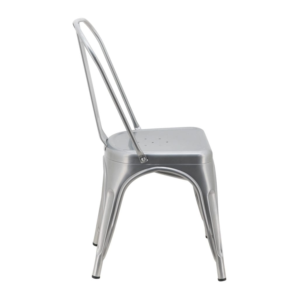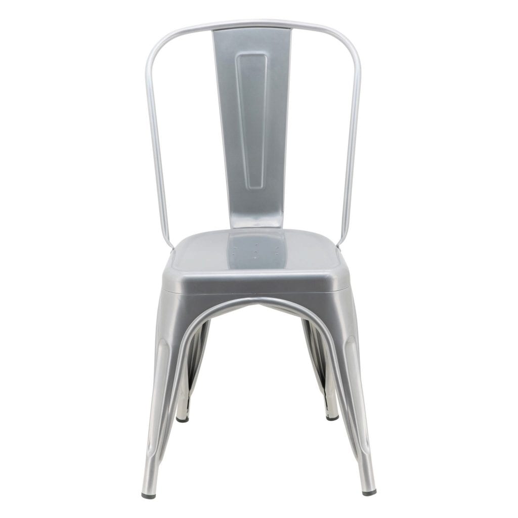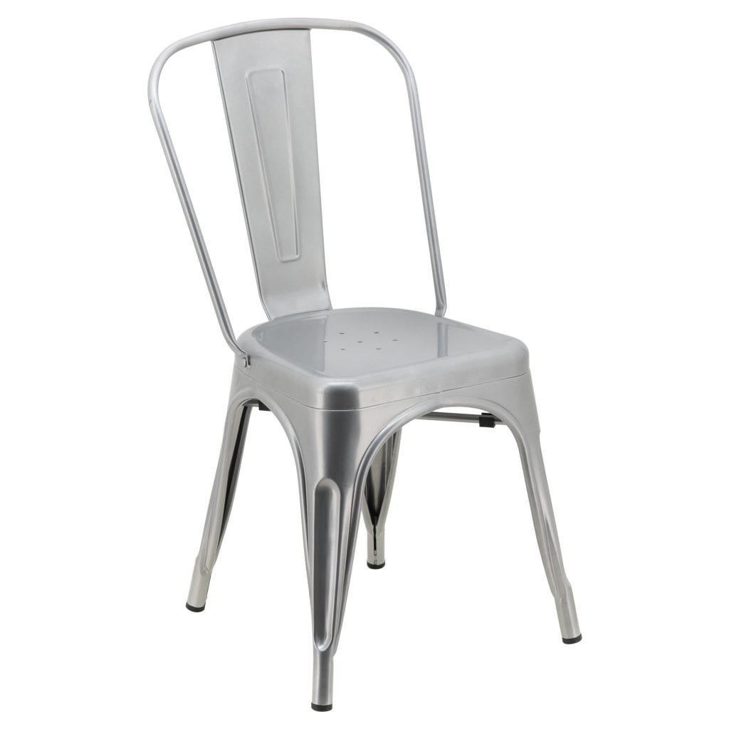 Silver gives a metallic yet refined look. The colour silver is associated with meanings of industrial, sleek, high-tech, and modern, as well as ornate, glamourous, graceful, sophisticated, and elegant. These Silver Replica Tolix Chairs are the perfect addition to any space. Light and durable, they can be utilised in many ways. Easily stackable, they can also save on storage space and are a great alternative to larger chairs, especially if you have a smaller customer area.