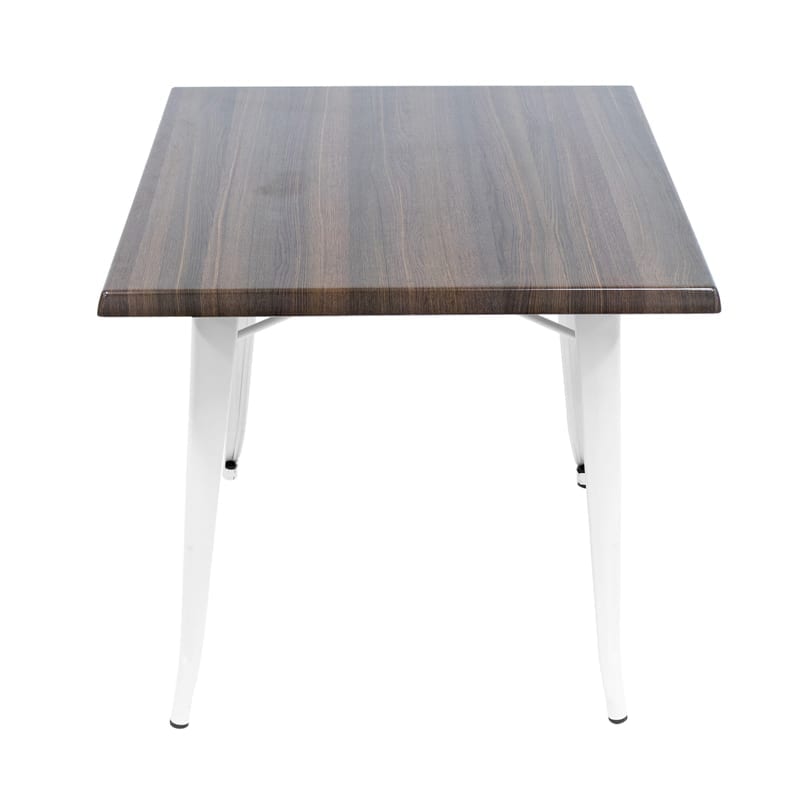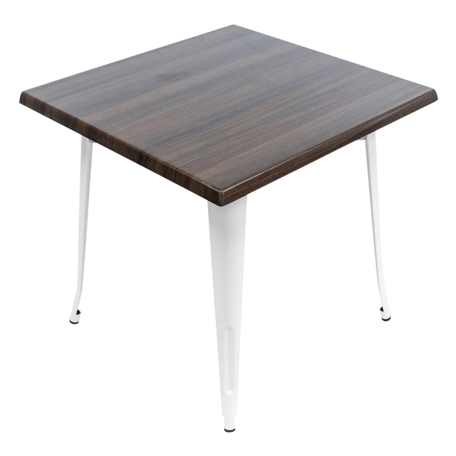 FEATURES Material Isotop Table Top: Plantation wood chip, resin and wax are formulated and precisely molded under high pressure and temperature, with a durable surface laminate to withstand the daily impact encountered. Tolix Base: Steel Finish Table Top: Gloss Choco Oak Laminate Base: Matte White Powdercoat Dimensions Table top: 800mm x 800mm Square, 35mm…