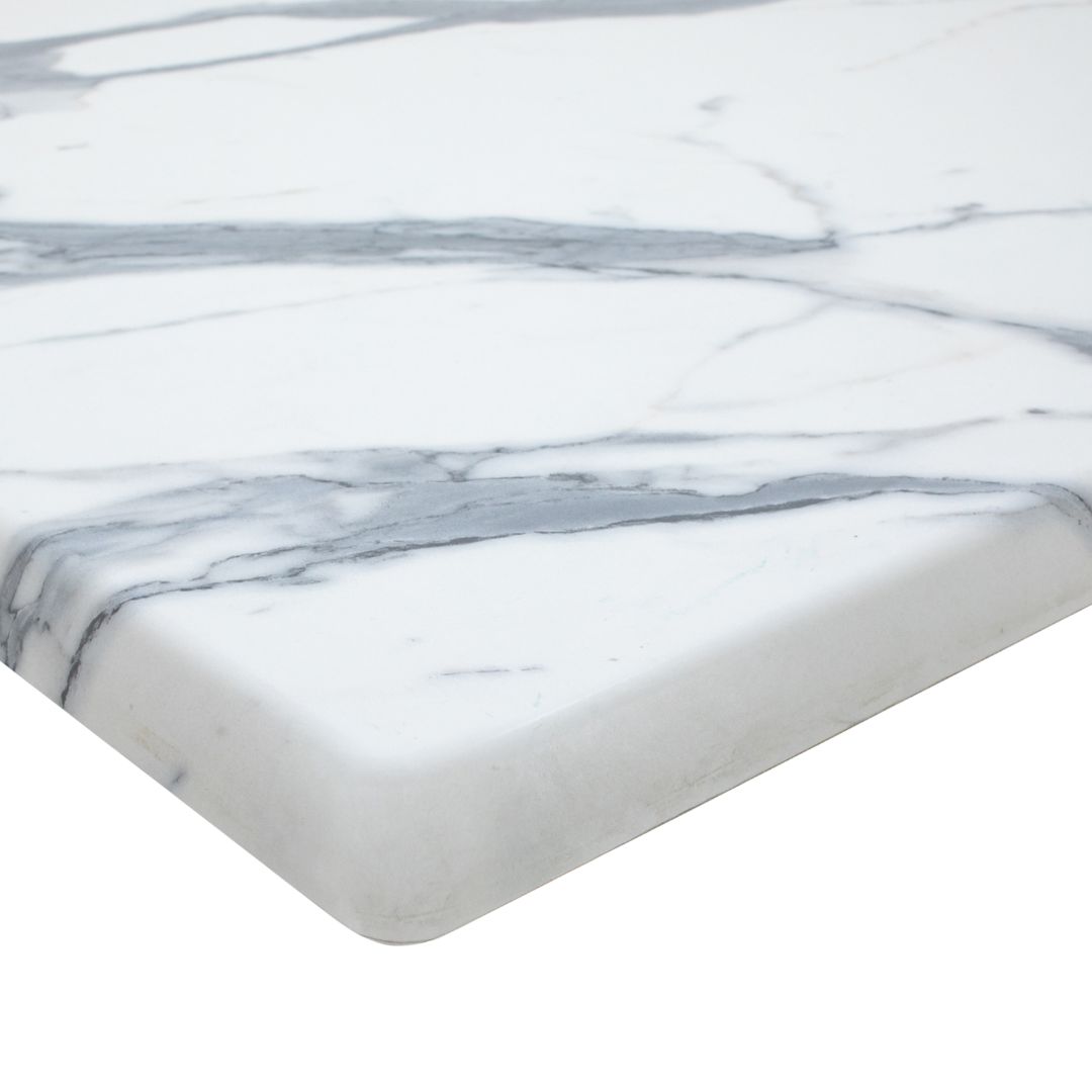 Table Top: Gloss Romeo Marble Base: Matte Black Powdercoat |