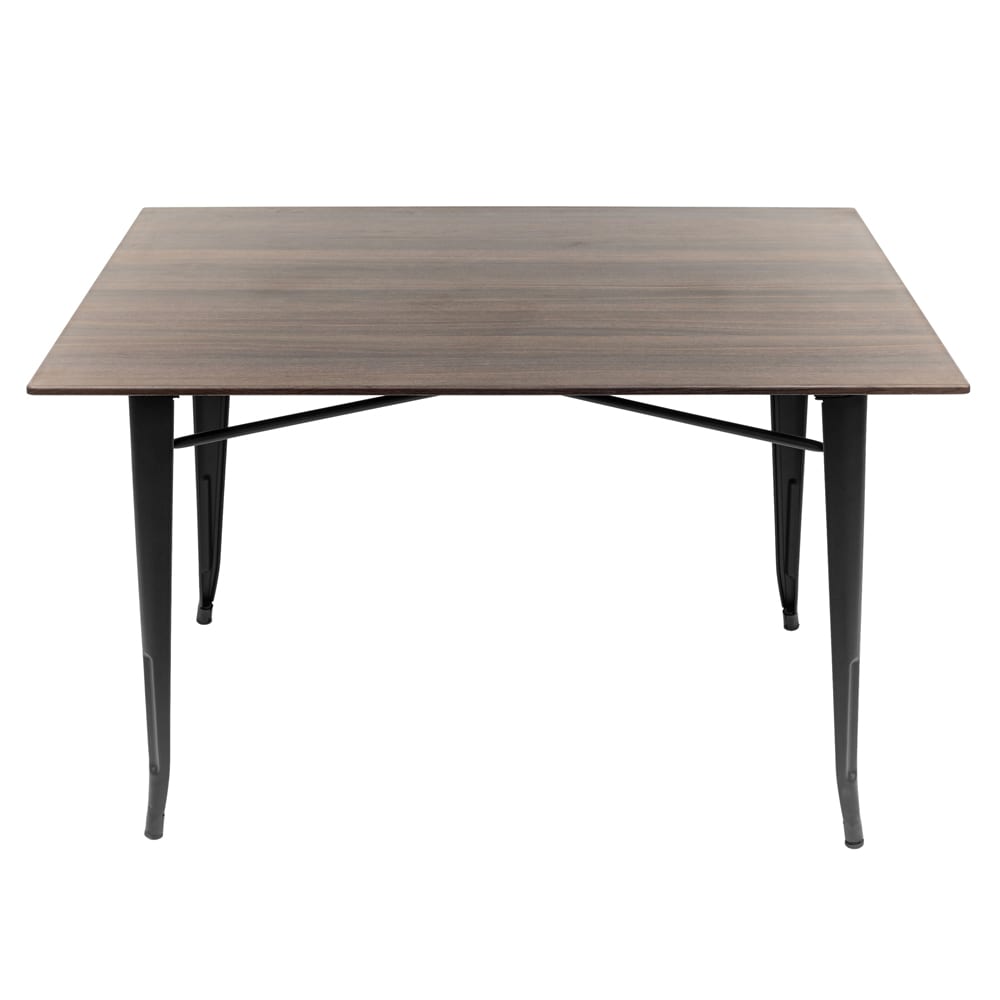 FEATURES MATERIAL Base: Steel Table Top: Plantation wood chip, resin and wax are formulated and precisely moulded under high pressure and temperature, with a durable surface laminate to withstand the daily impact encountered. FINISH Base: Matte Black Powdercoat Table Top: Matte Choco Oak Laminate INDOOR/OUTDOOR Indoor Use Only NEEDS ASSEMBLY Yes SCREWS INCLUDED Yes DIMENSIONS…