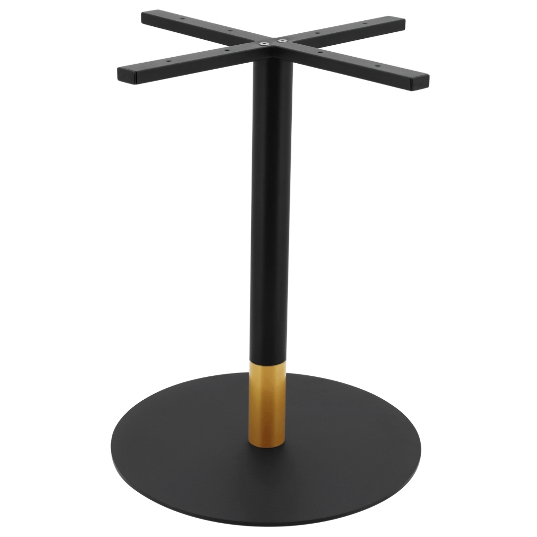 FEATURES Material Steel Finish Matte Black Powdercoat, Gold Tip Indoor/Outdoor Indoor and Outdoor Use (Colour may fade overtime) Needs Assembly Yes. Easy to assemble Screws included Yes Dimensions Height: 720mm Top span: 500mm Bottom span: 540mm Quality Commercial grade Warranty 12 months Max top size 800mm – 900mm Max 20kg Please note that this base…