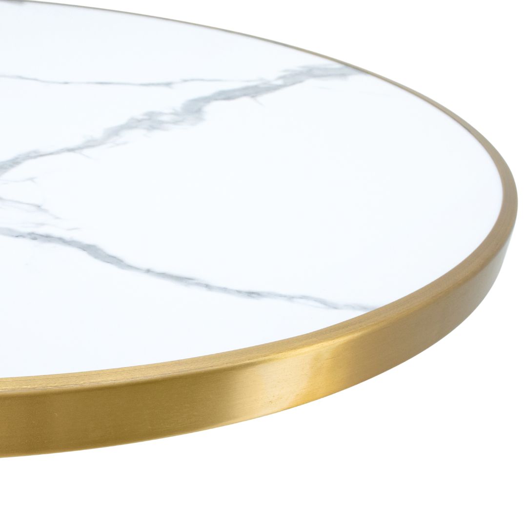 Features Material Porcelain Table Top wiht 201 Stainless Steel Gold Trim Finish Verona Marble Porcelain **Please note Print may vary Dimensions 700mm Diameter 30mm thickness Weight: 12kg Predrilled holes No Predrilled holes Indoor or Outdoor Indoor Only Quality Commercial grade Warranty 12 months Other Features Table top only, see table bases category for table…
