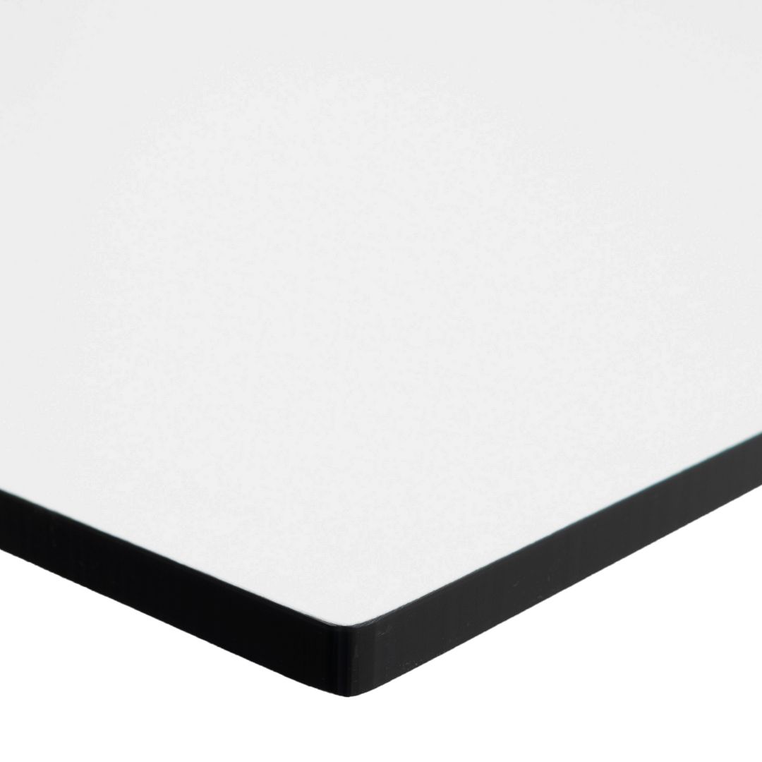 Features Material Layers of Recycled Paper Fibers dipped in resin and dried which is then stacked between laminate before being compressed under high pressure and heated to permanently meld together. Finish Matte White Laminate Black Flat Edge Dimensions 800mm x 800mm 12mm thickness **Due to this product being compact Laminate, there may be a…
