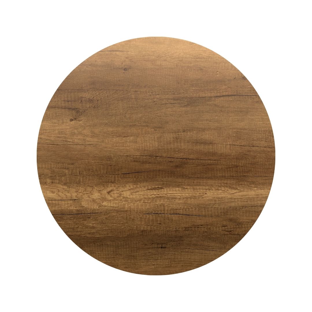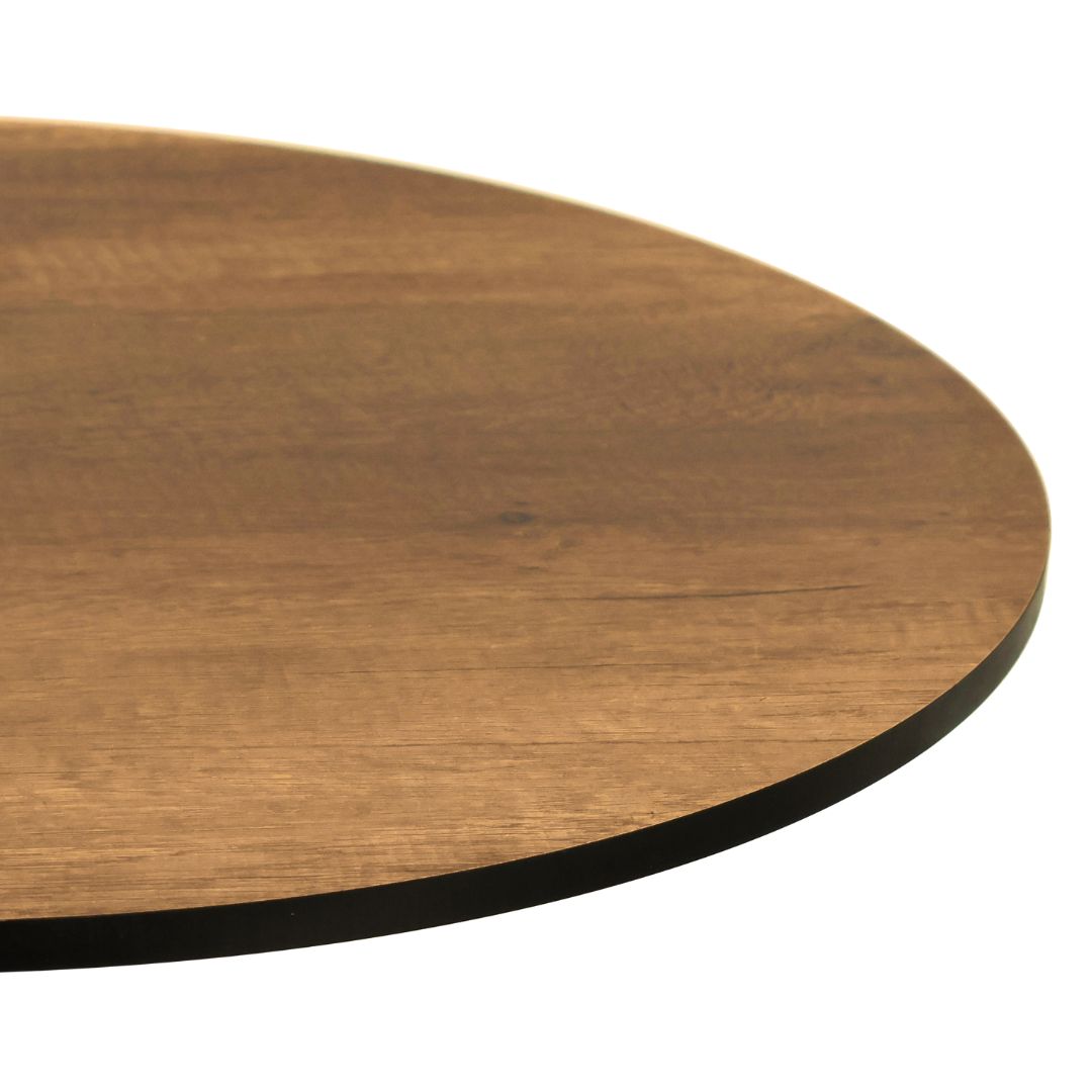Features Material Layers of Recycled Paper Fibers dipped in resin and dried which is then stacked between laminate before being compressed under high pressure and heated to permanently meld together. Finish Matte Walnut Laminate Black Flat Edge Dimensions 700mm Diameter 12mm thickness Weight: 6.8kg **Due to this product being compact Laminate, there may be…