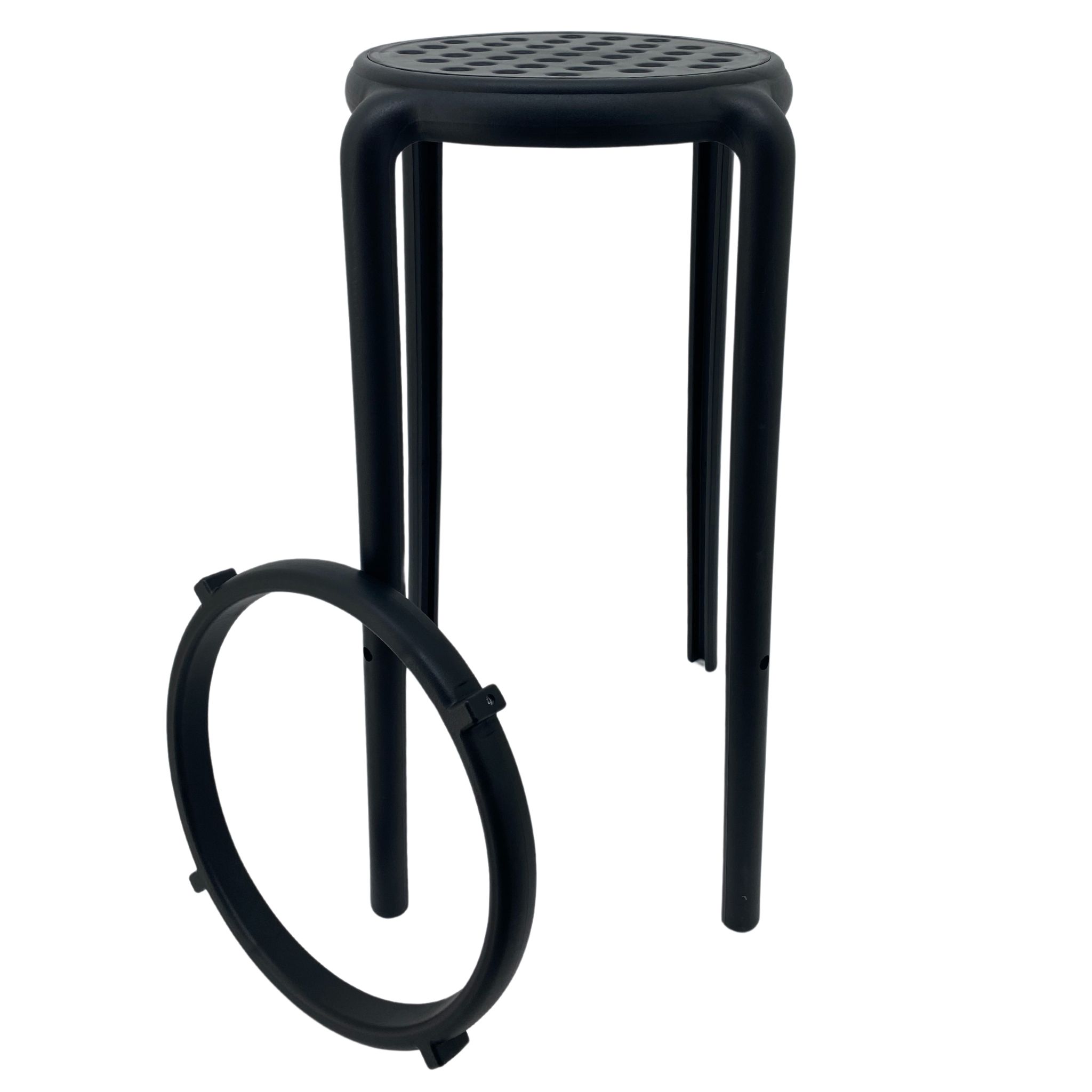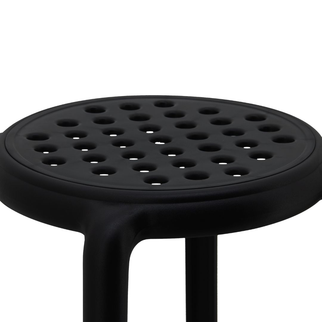 Features Material Polypropylene single mould injection Finish N/A Indoor/Outdoor Indoor and Outdoor use Needs Assembly Yes (Attach Foot Rest with Bolts provided) Dimensions D 370mm x W 370mm x H 760mm Weight: 3.3kg Stackable Yes (2 high) Quality Commercial grade Warranty 1 year warranty against faults arising from defective workmanship Other Features Static Seat Load…