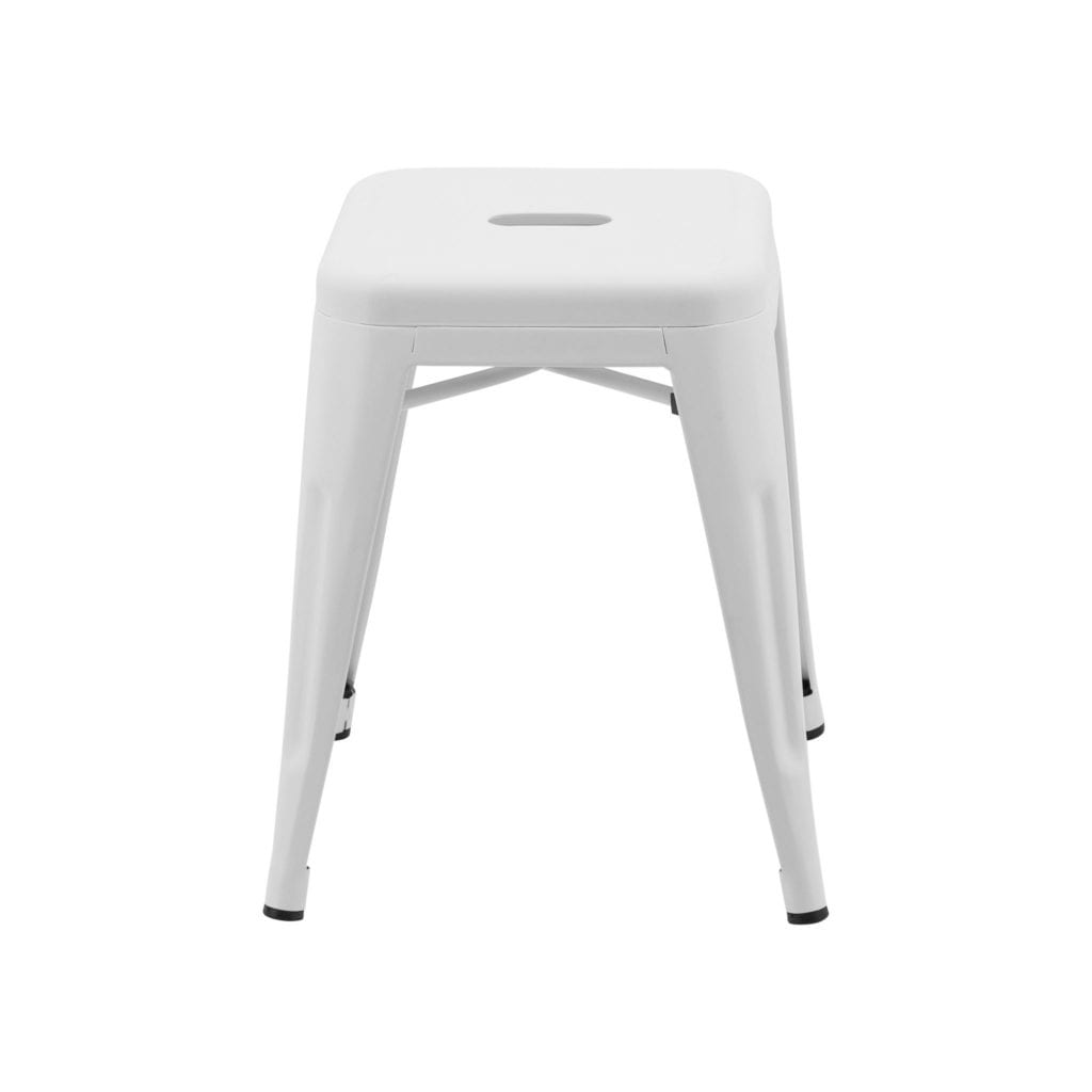 If you look through any interior design magazine you’re likely to come across a Tolix bar stool in a wide variety of settings. This iconic stool was the brainchild of Xavier Pauchard who introduced it to France in 1934 where it was soon to be found in every bar and restaurant throughout Paris. As popular today as it was back then our replica Tolix 46cm white stools are as functional and versatile as the original. Made from powder coated steel with a white gloss finish they’re extremely strong and durable yet light enough to be moved from place to place as the need arises. What’s more they stack on top of each other to space if you need to store them away. With a generous sized seat supported by cross-struts beneath and with elegantly tapered legs topped off with rubber caps to prevent slippage, they’re safe and sturdy and can be used in the busiest of cafés, bars or restaurants. They’re also very easy to clean, needing little more than a daily dust with a lint free cloth or a wipe over with a damp cloth to remove any marks or spills.