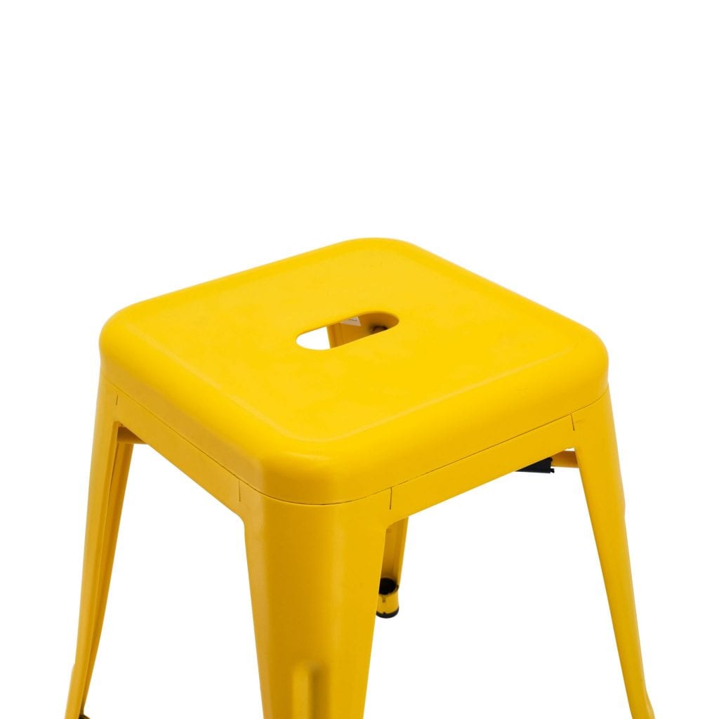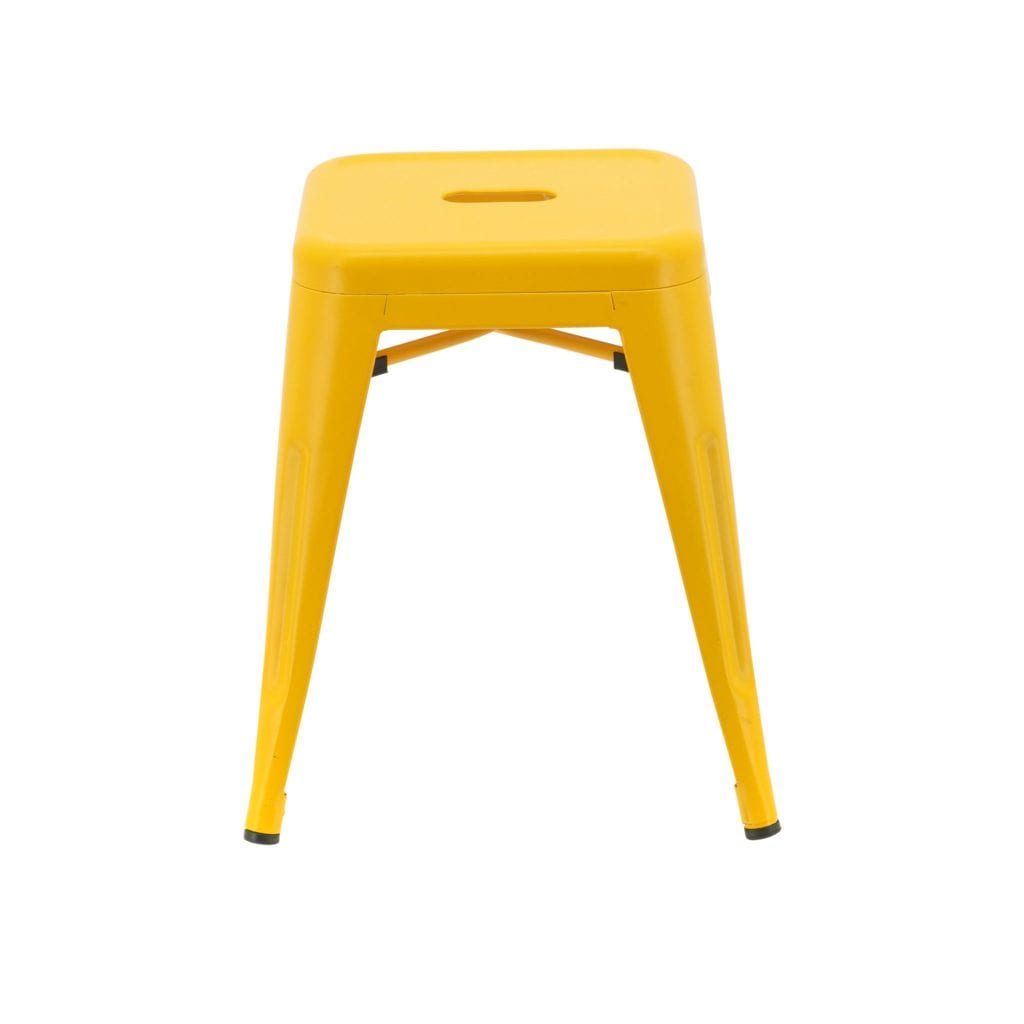 Similar to the ‘little black dress’ no café or restaurant should be without a Tolix yellow bar stool. Small but perfectly formed at a height of 46cms, these fabulous stools are an exact copy of the original Tolix bar stool introduced to France in 1934 by Frenchman Xavier Pauchard. Boasting a perfect combination of form and function these iconic stools are made from powder coated steel with a yellow matte finish. Simplistic in their style they feature a generous sized seat which is supported underneath with a cross strut, and legs which gently taper towards the bottom and are finished with a rubber cap to prevent slippage. The stools are lightweight and yet surprisingly robust and can be moved easily from one place to another and stacked on top of each other for storage.