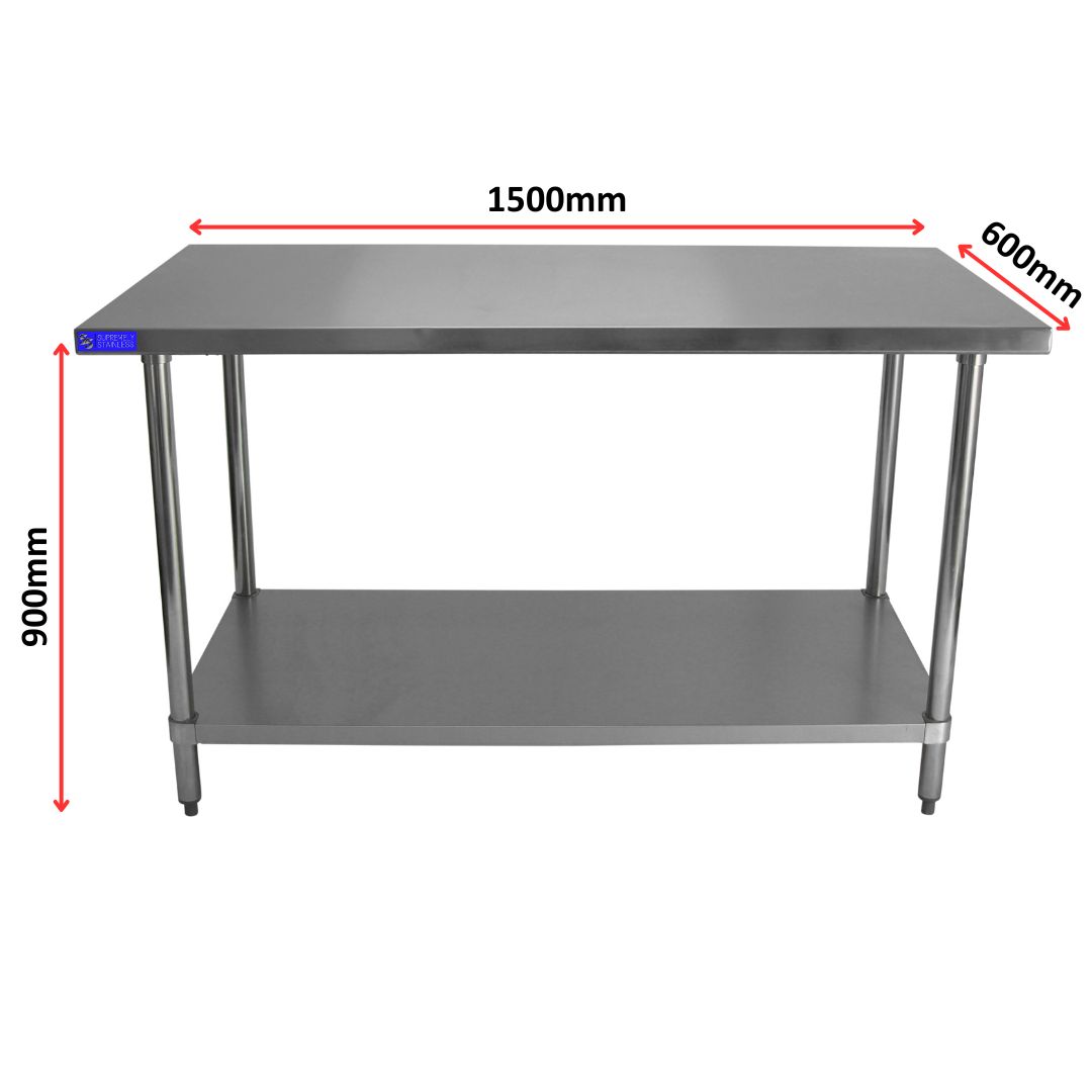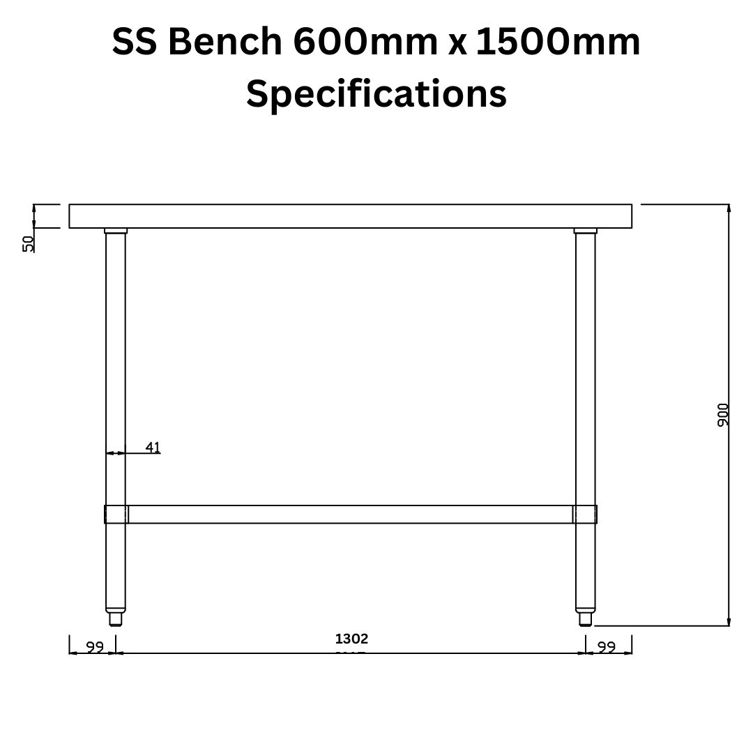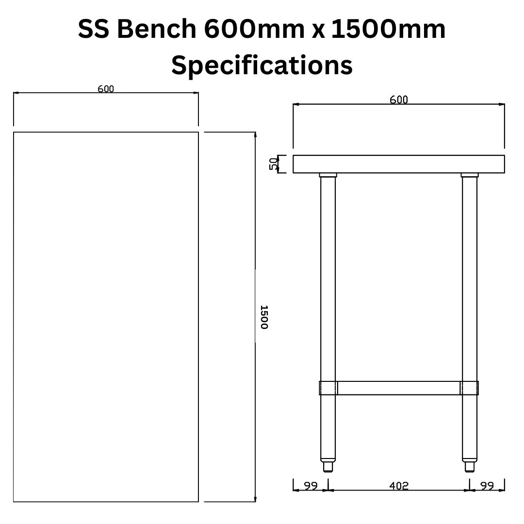 Aside from offering a spacious workspace, this Stainless Steel Bench 600mm x 1500mm is perfect for plating and preparing meals and handling numerous kitchen tasks.