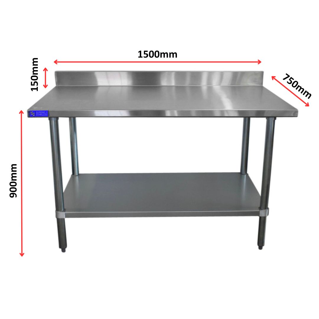 Cafe Solutions Stainless Steel Bench with Splashback 750mm x 1500mm is the ideal choice when you need more space when preparing meals.