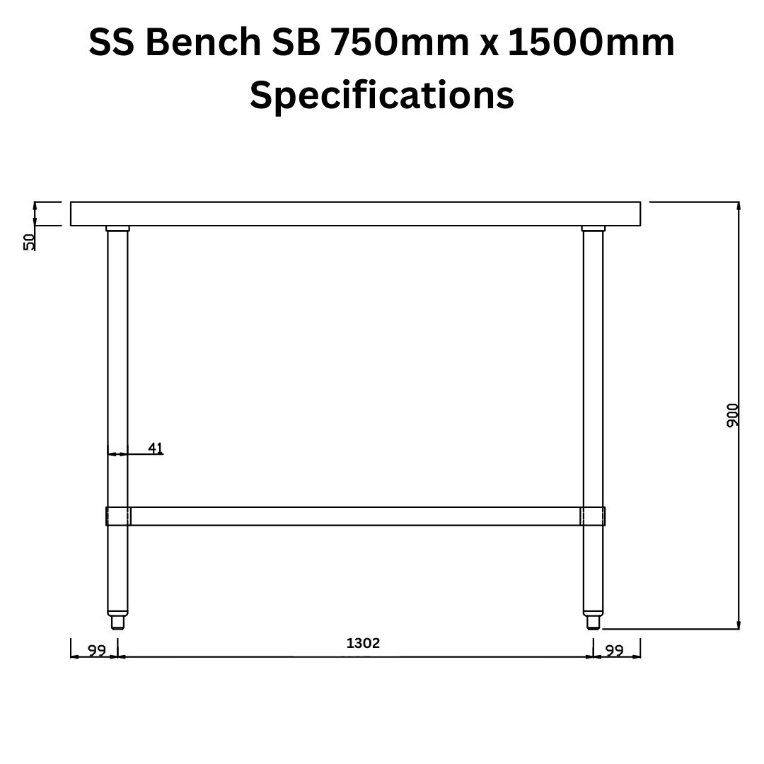 Its dimensions are – height: 900mm, length: 1500mm, width: 750mm, and splashback: 150mm. This heavy-duty bench is the perfect setup for outdoor kitchens, food market stalls, and commercial kitchens.
