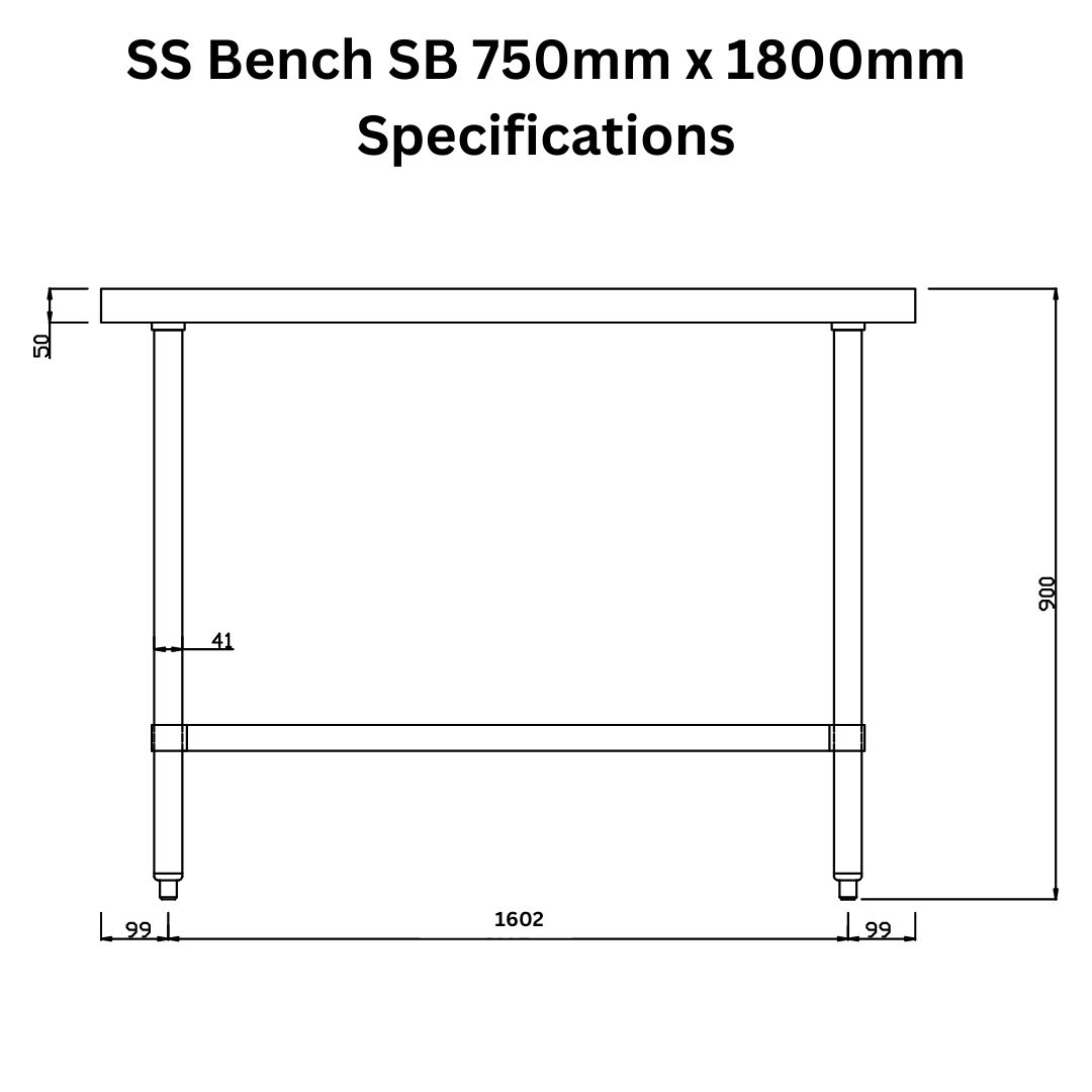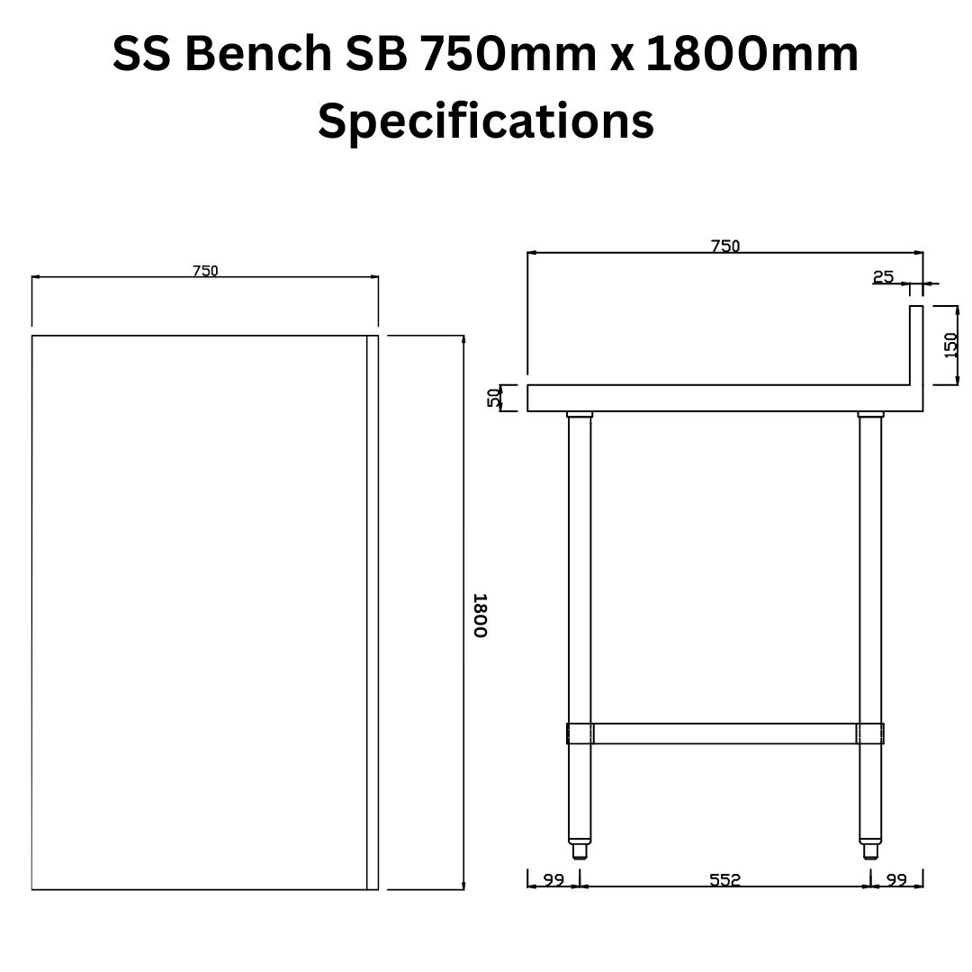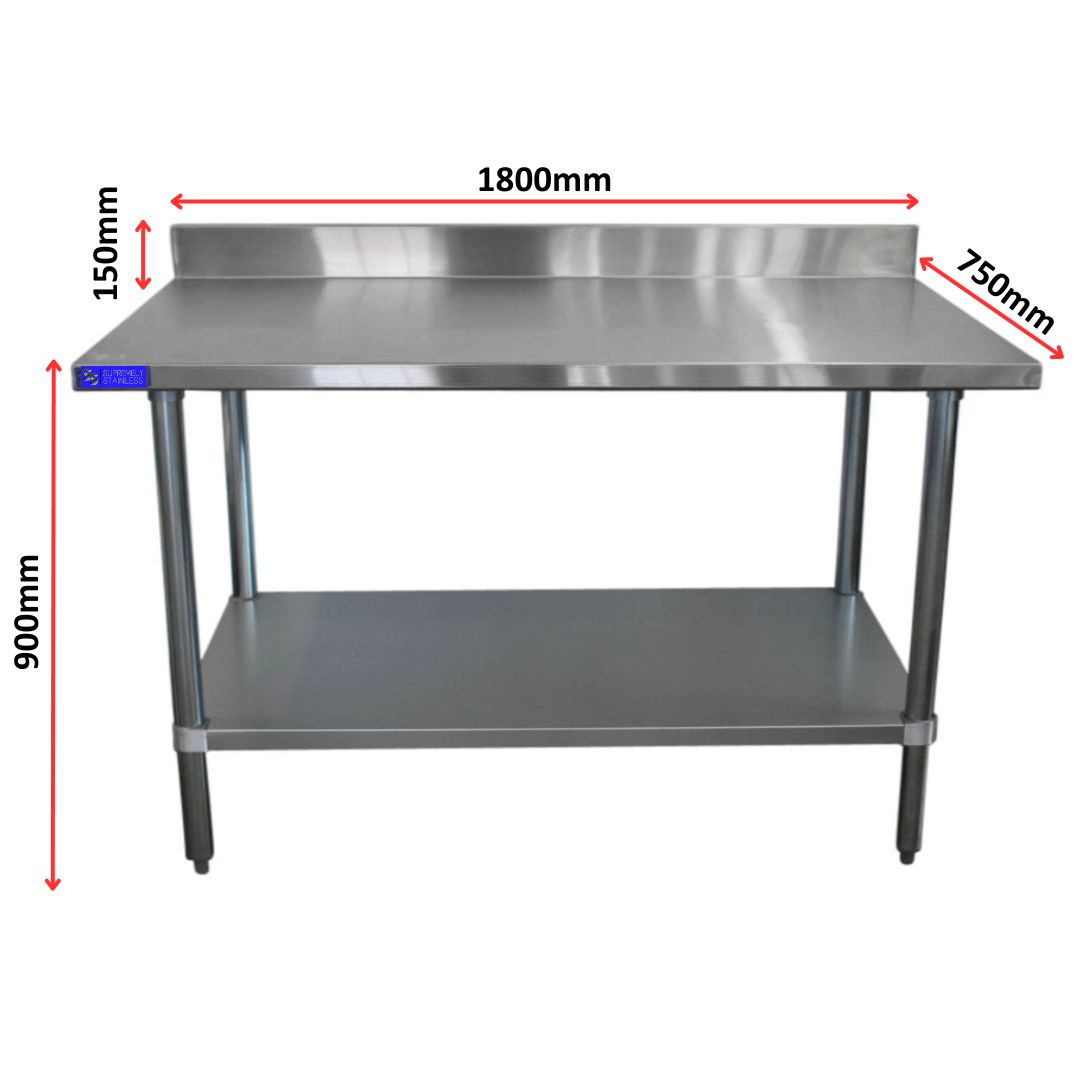 Our stainless steel bench with splashback 750mm x 1800mm is easy to clean; because of its clear and gleaming surface, you can easily spot and remove stains & smears; all you need is a clean cloth and warm water.