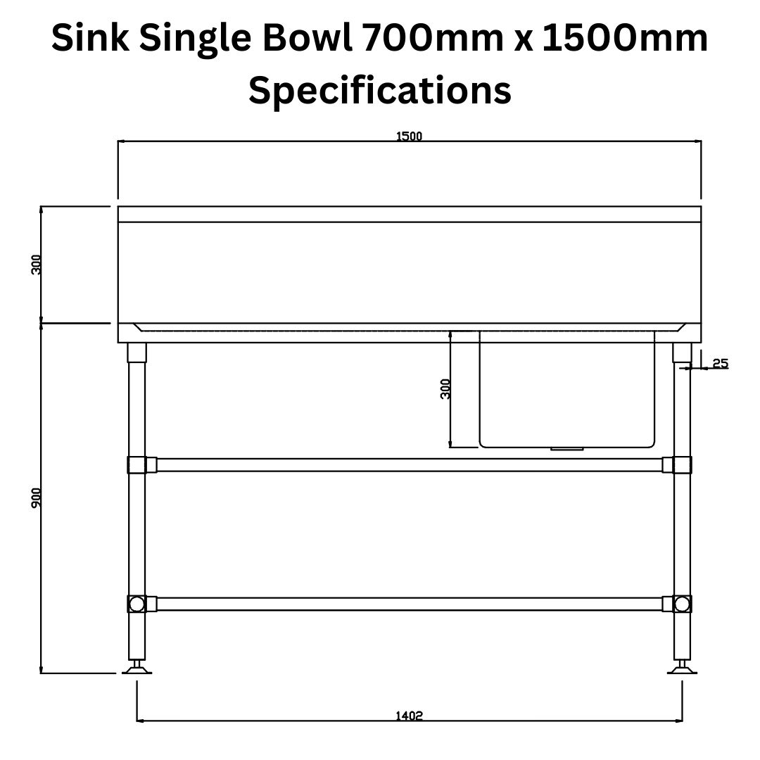 This bench is made of quality 304 stainless steel with steel legs and adjustable feet (ideal for uneven surfaces), this heavy duty stainless steel bench and sink is perfect for commercial or home use. Material Grade 304 Stainless Steel Needs Assembly Yes – easy to assemble Dimensions Length: 1500mm Width: 700mm Height: 900mm Splashback Height:…